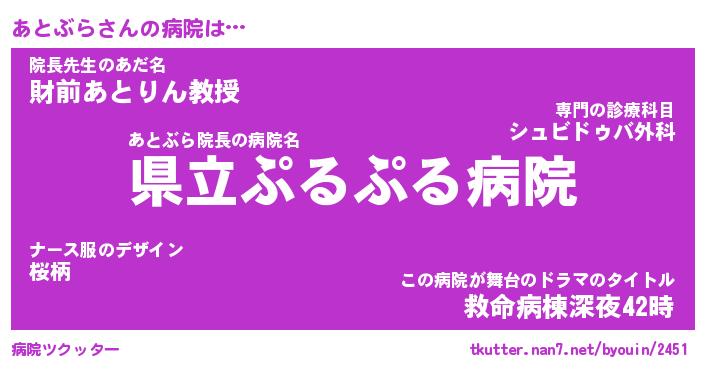 | 意味不明あだ名 | 『ペロリンあとぶら』『永久保存あとぶら』 |