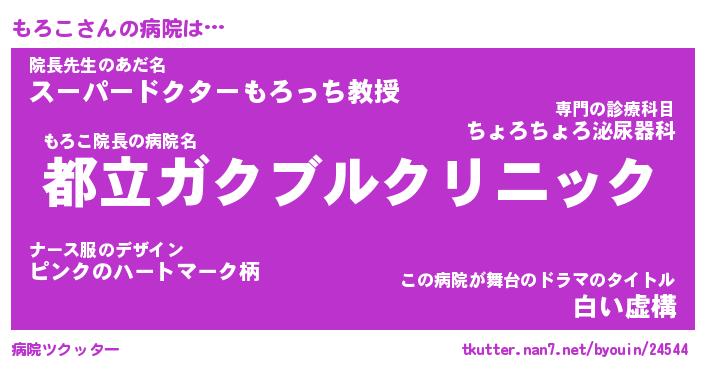 | 2回繰り返すあだ名 | 『もろもろ』『ももろろ』『うねうね』 |