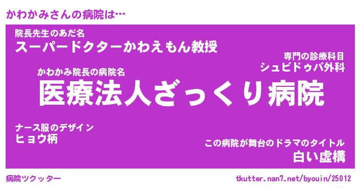 | 胡散臭い通販商品みたいなあだ名 | 『億万長者になれる霊験あらたかなお札…その名も「かわかみ」』 |