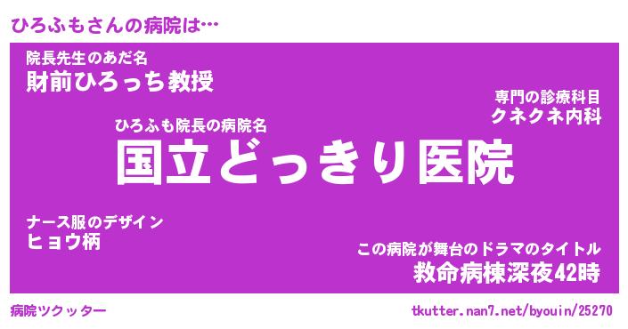 | ヘコむあだ名 | 『ひろっふぃ~』『レバニラ』 |