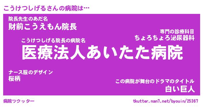 | 男性向けラノベタイトル風あだ名 | 『コウケツシゲルアートオンライン』 |