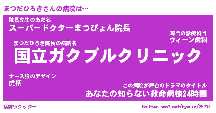 | ヒーロー風カッコイイあだ名 | 『スーパーマツダヒロキ』『天弓騎士マツ』 |