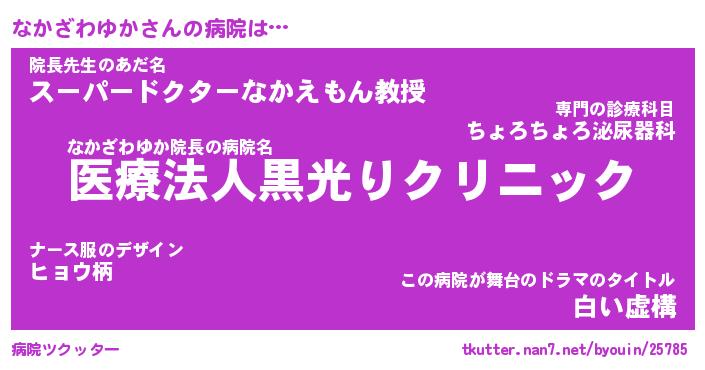 | ヒーロー風カッコイイあだ名 | 『スーパーナカザワユカ』『暗黒騎士ナカ』 |