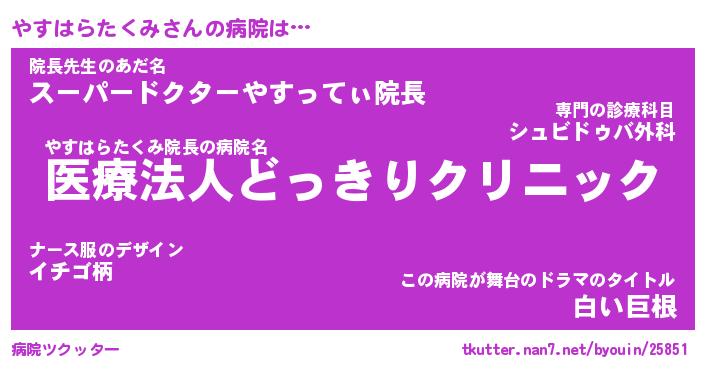 | ポケモン風あだ名 | 『ヤスチュウ』『ヤスハダネ』 |