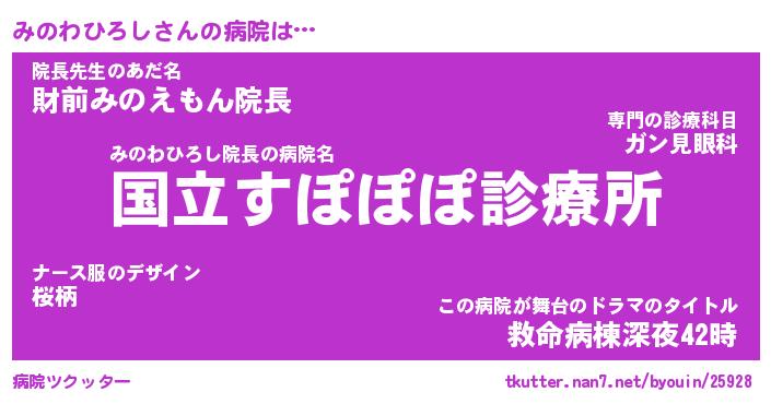| 伝説のあだ名 | 『伝説のスナイパーみのわひろし』 |