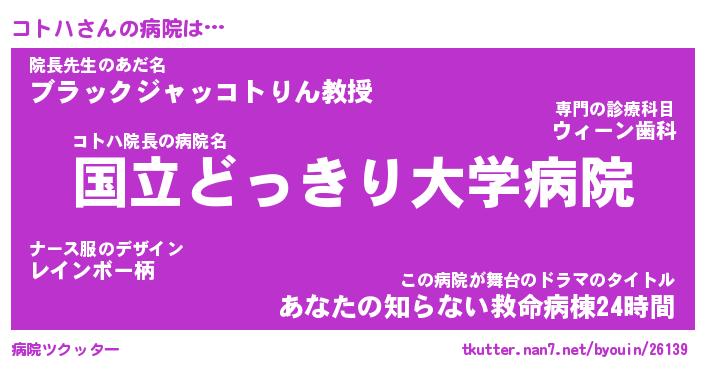 | ヘコむあだ名 | 『コトっふぃ~』『なまこ酢』 |