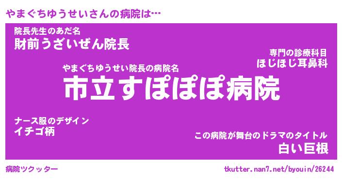 | 伝説のあだ名 | 『伝説のスナイパーやまぐちゆうせい』 |