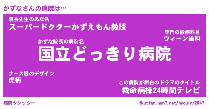 | 伝説のあだ名 | 『伝説のスナイパーかずな』 |