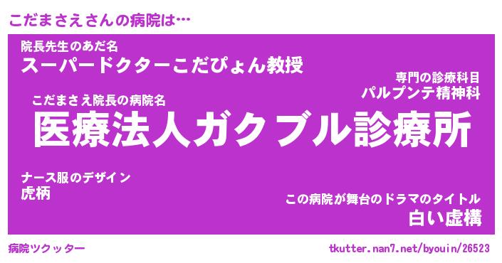 | ファンタジー風あだ名 | 『コダフェル』『エターナルコダマサエー』 |