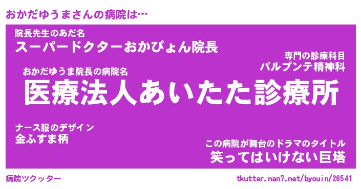| 胡散臭い通販商品みたいなあだ名 | 『億万長者になれる霊験あらたかなお札…その名も「おかだゆうま」』 |