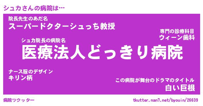 | ヘコむあだ名 | 『シュっふぃ~』『つくし』『シュお』 |