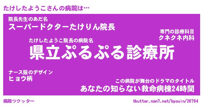 | ヒーロー風カッコイイあだ名 | 『スーパータケシタヨウコ』 |