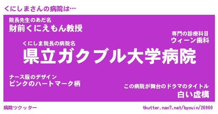 | 男性向けラノベタイトル風あだ名 | 『くにしまの憂鬱』 |