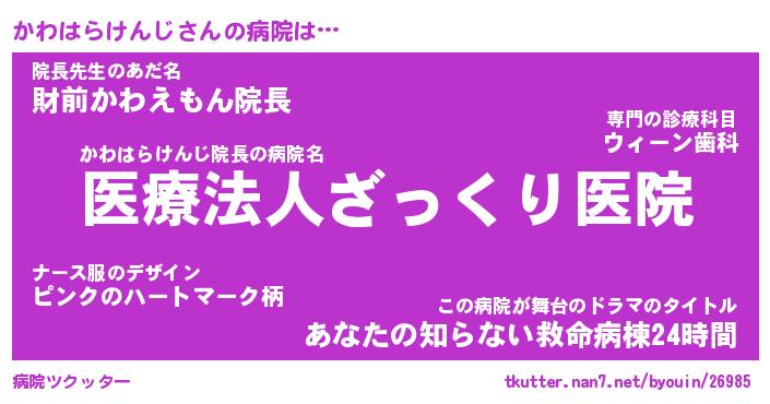 | 伝説のあだ名 | 『封印されしスナイパーかわはらけんじ』 |