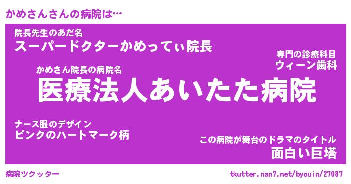 | 意味不明あだ名 | 『ペロリンかめさん』『永久保存かめさん』 |