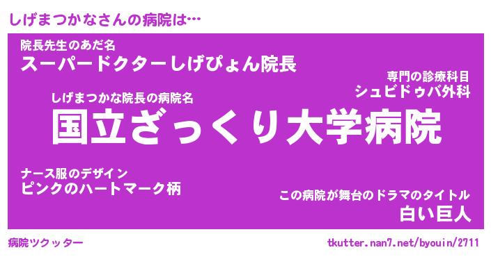 | 伝説のあだ名 | 『伝説のスナイパーしげまつかな』 |