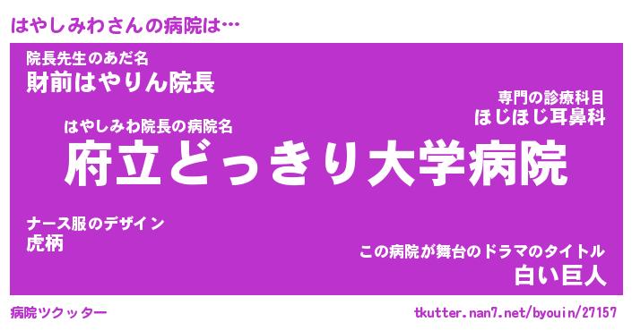 | ファンタジー風あだ名 | 『ハヤフェル』『エターナルハヤシミワー』 |