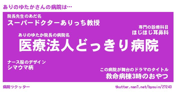 | 恥ずかしいあだ名 | 『プリティーありのゆたか』『ありっちょ』 |