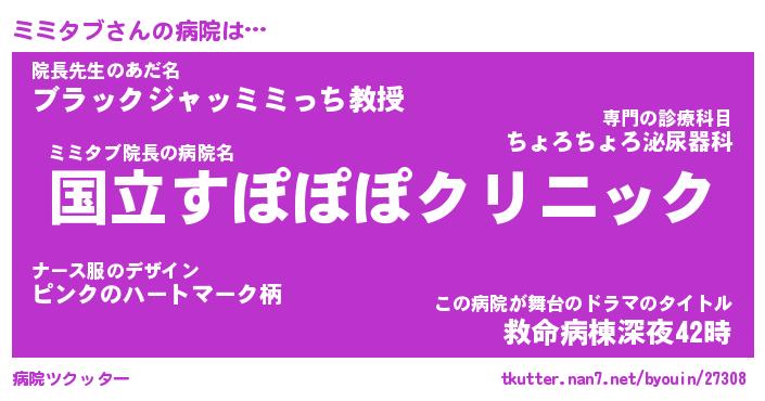 | 男性向けラノベタイトル風あだ名 | 『ミミタブの憂鬱』 |