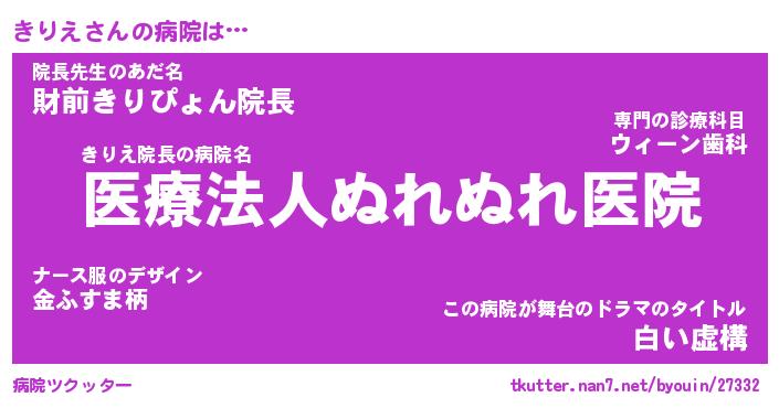 | 2回繰り返すあだ名 | 『きりきり』『ききりり』『ぬれぬれ』 |