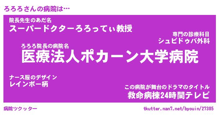 | ヘコむあだ名 | 『ろろにゅー』『牛乳』『ろろっちょ』 |