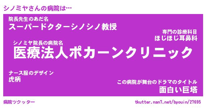 | 意味不明あだ名 | 『ペロリンシノミヤ』『永久保存シノミヤ』 |