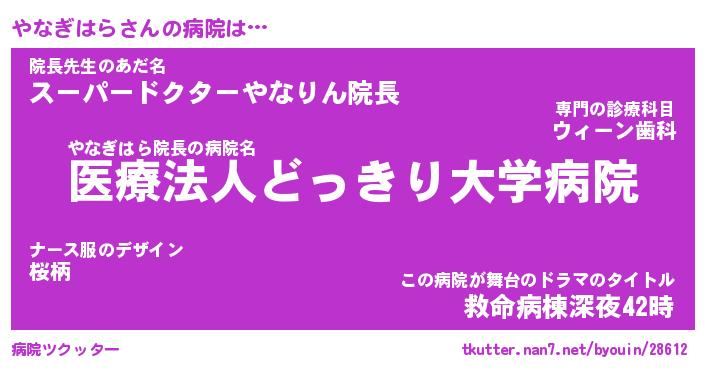 | ファンタジー風あだ名 | 『ヤナフェル』『エターナルヤナギハラー』 |