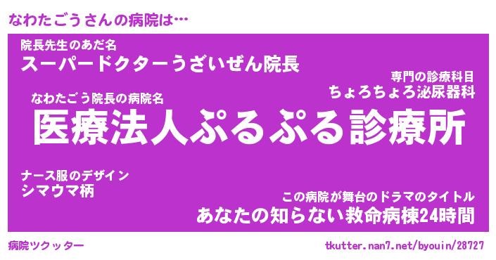 | ピコ太郎風あだ名 | 『ナコ二郎』『ピナ十郎』『ナワ六郎』 |