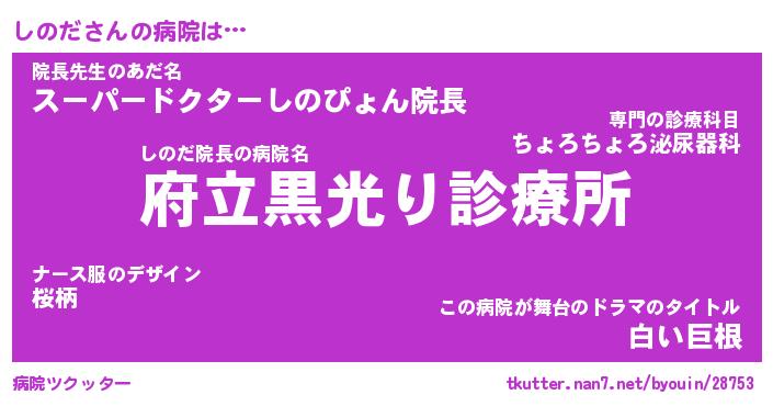 | ヒーロー風カッコイイあだ名 | 『スーパーシノダ』『ウルトラしのだマン』 |