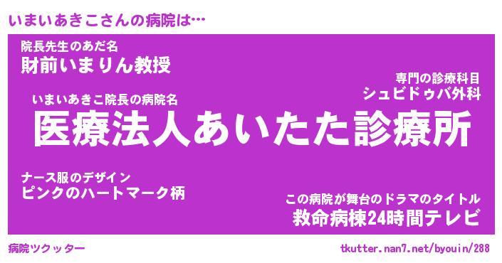 | ヒーロー風カッコイイあだ名 | 『スーパーイマイアキコ』『黄金騎士イマ』 |