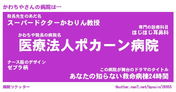| ヒーロー風カッコイイあだ名 | 『スーパーカワチヤ』『暗黒騎士カワ』 |