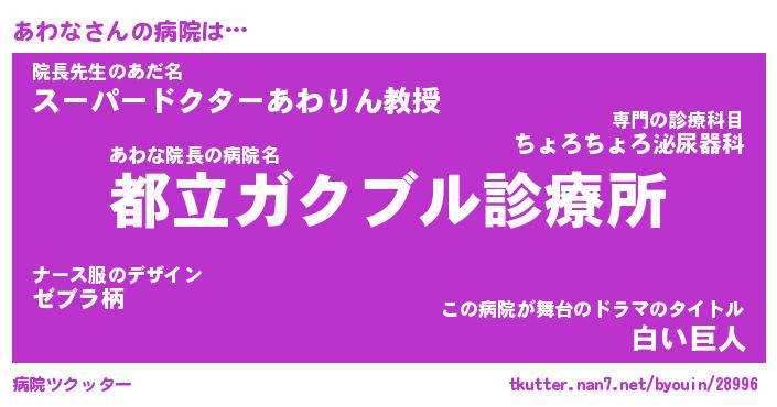 | ヒーロー風カッコイイあだ名 | 『スーパーアワナ』『ウルトラあわなマン』 |