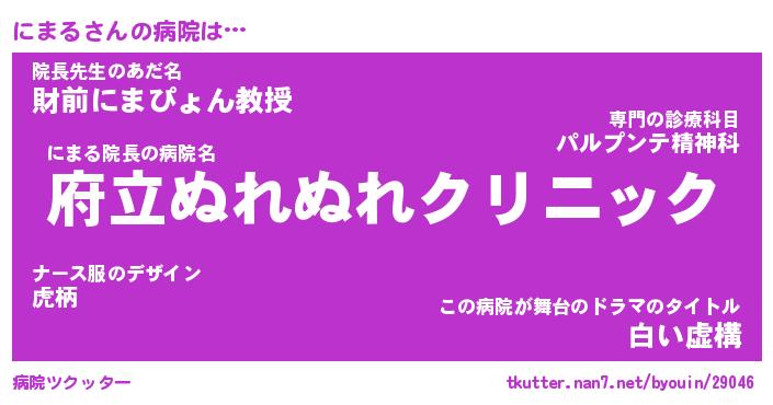 | ヘコむあだ名 | 『にまもー』『酢こんぶ』『にまっぺ』 |