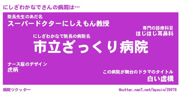 | ポケモン風あだ名 | 『ニシチュウ』『ニシザダネ』 |