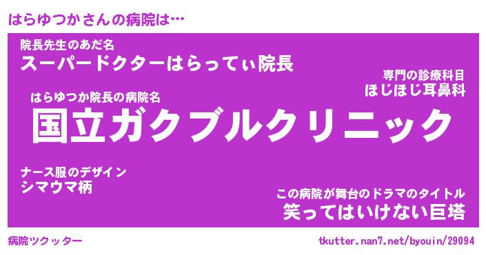 | ヘコむあだ名 | 『はらにゅー』『つくし』『はらっ子』 |