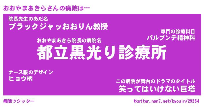 | 恥ずかしいあだ名 | 『プリティーおおやまあきら』『おおちん』 |