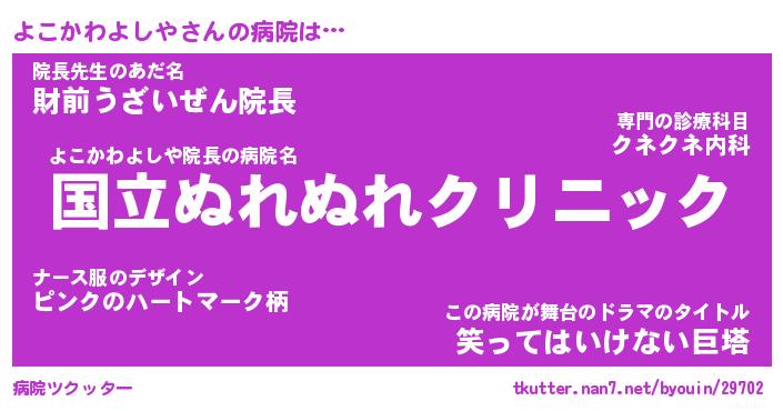 | 男性向けラノベタイトル風あだ名 | 『よこかわよしやの憂鬱』 |