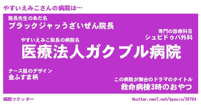 | 欧米人風あだ名 | 『マイケルやすいえみこ』 |