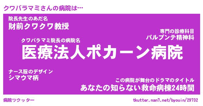 | ヒーロー風カッコイイあだ名 | 『スーパークワバラマミ』『黄金騎士クワ』 |