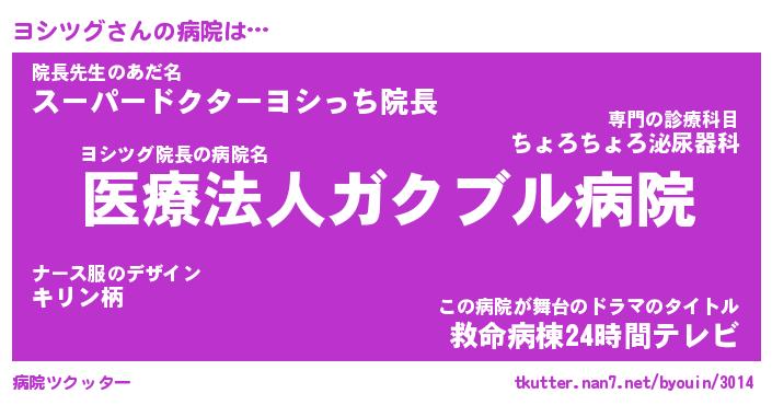 | ピコ太郎風あだ名 | 『ヨコ史郎』『ピヨ三郎』『ヨシ史郎』 |