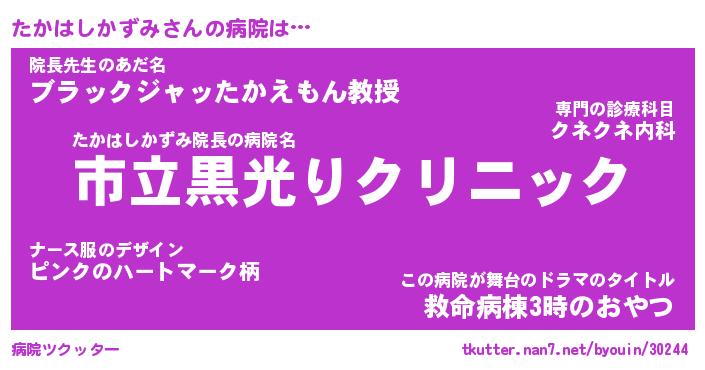 | 女子向けラノベタイトル風あだ名 | 『(仮)たかはしかずみのやんごとなき事情』 |
