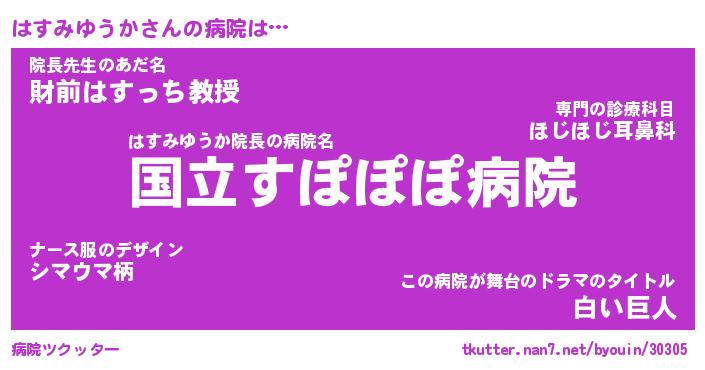 | 恥ずかしいあだ名 | 『プリティーはすみゆうか』『はすっちょ』 |