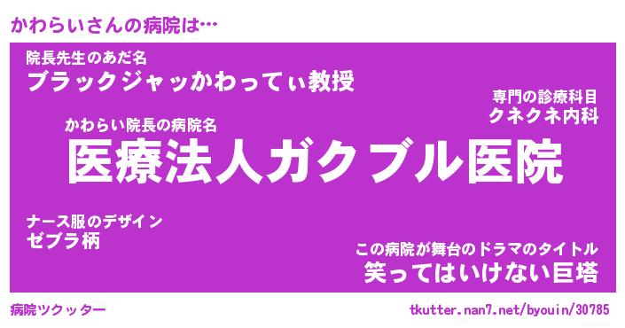 | 意味不明あだ名 | 『ペロリンかわらい』『永久保存かわらい』 |