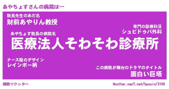 | 胡散臭い通販商品みたいなあだ名 | 『億万長者になれるブレスレット…その名も「あやちょす」』 |