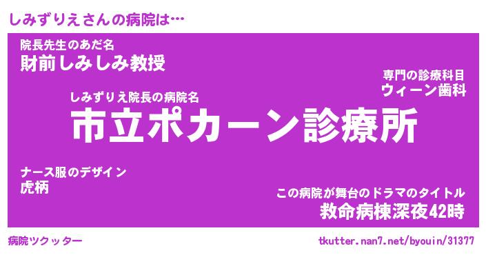 | 肩書あだ名 | 『しみずりえ店長』『しみずりえ総理大臣』 |