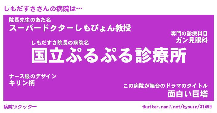 | 2回繰り返すあだ名 | 『しもしも』『ししもも』『ぬらぬら』 |