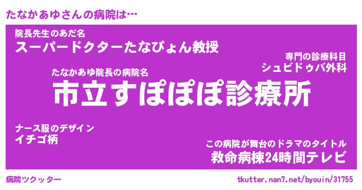 | 伝説のあだ名 | 『伝説のスナイパーたなかあゆ』 |