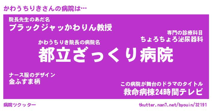 | 男性向けラノベタイトル風あだ名 | 『カワウチリキアートオンライン』 |