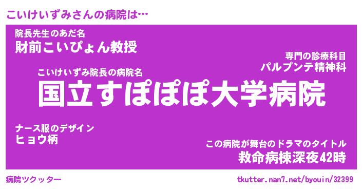 | 伝説のあだ名 | 『伝説のスナイパーこいけいずみ』 |