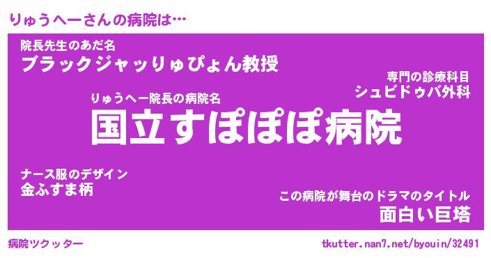 | 男性向けラノベタイトル風あだ名 | 『りゅうへーの憂鬱』 |